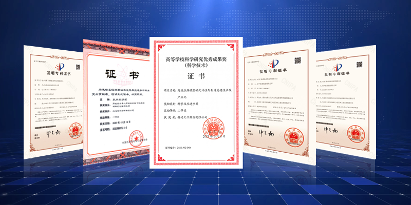 授权专利56项 发明专利39项 承担科技项目20余项 获科技进步奖10余项 新产品鉴定20项 国际领先3项,国际先进9项 起草国家及行业标准12项